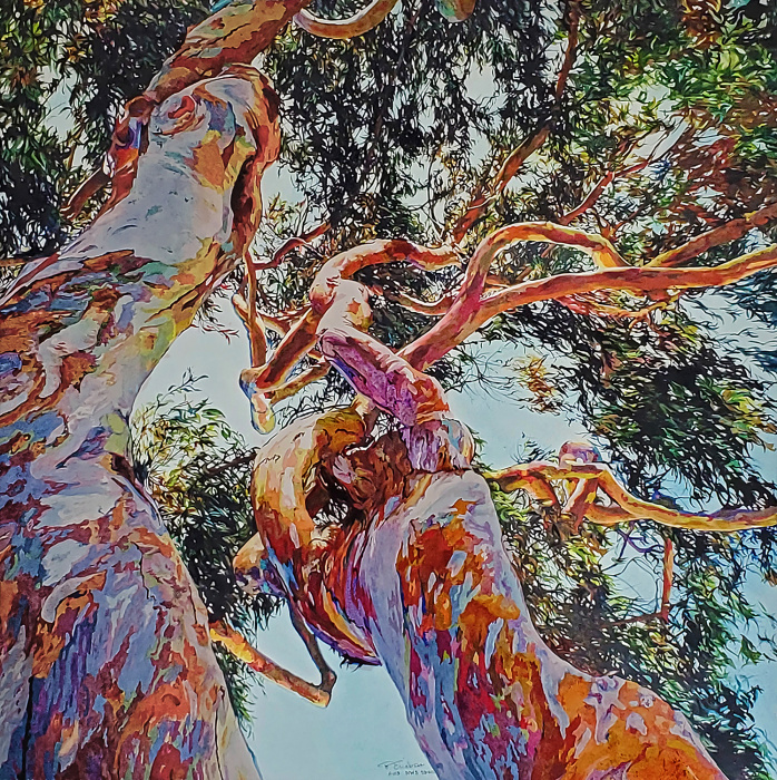 Transparent watercolor 38" x 38" eucalyptus tree in Carlsbad, Ca soldtags: rainbow eucalyptuscolorful tree