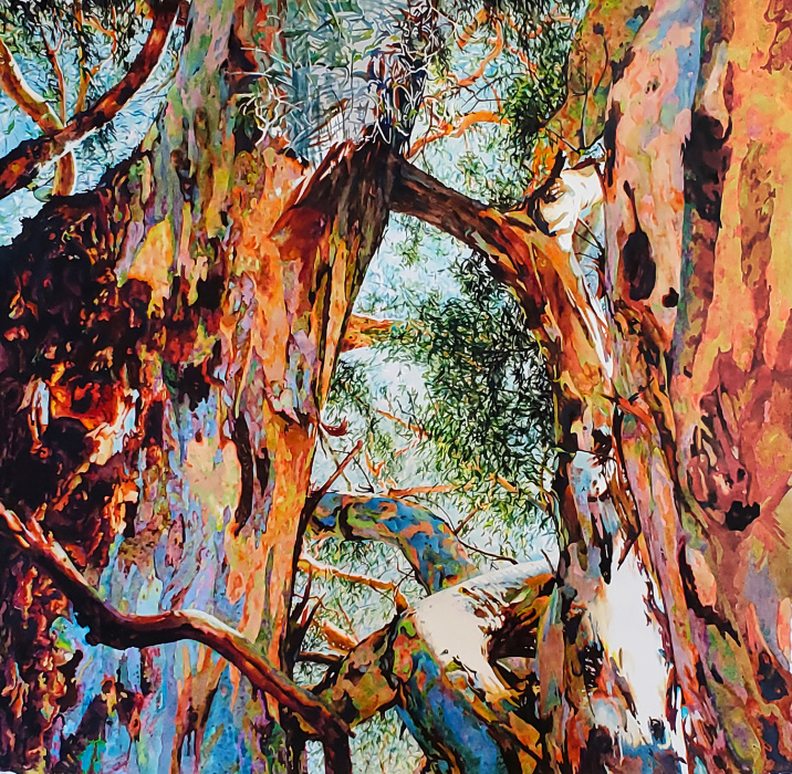 Portrait of an australian eucalyptus near Tallarook National Park Transparent watercolor, 34" x 35" soldtags: Australian treeEucalyptus portrait